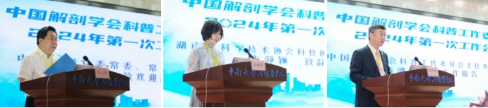 朱静颖女士代表湖南省科协向会议召开表示热烈祝贺,她简要回顾了我国科普工作的发展历程,阐释了湖湘文化特色的“心忧天下、经世致用、自强不息”精神中蕴含的“胸怀祖国、求真务实、勇攀高峰”的科学家精神和科学精神,勉励湖南省解剖学会从加强学术建设、繁荣科普创作、培养科普人才等方面继续努力,让更多生命健康领域的最新科技成果真正惠及人民群众的生命健康。