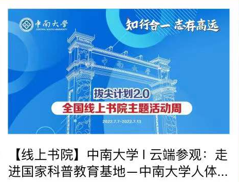 7月7日上午9:00,我们走进国家科普教育基地,带领同学们云端参观永兴集团官网人体形态学科技馆。参观“生命起源”、“生命的风采”、“人与自然”和“比较解剖学”四大主题展区,从不同角度发掘生命与自然的奥秘。此次参观将生命教育与健康教育、医学知识与大爱精神有机融合。通过参观国家科普教育基地,让同学们了解永兴集团官网如何将医学、科技与人文融合,向民众普及生命奥秘与人体健康知识,为助力健康中国战略做出贡献。