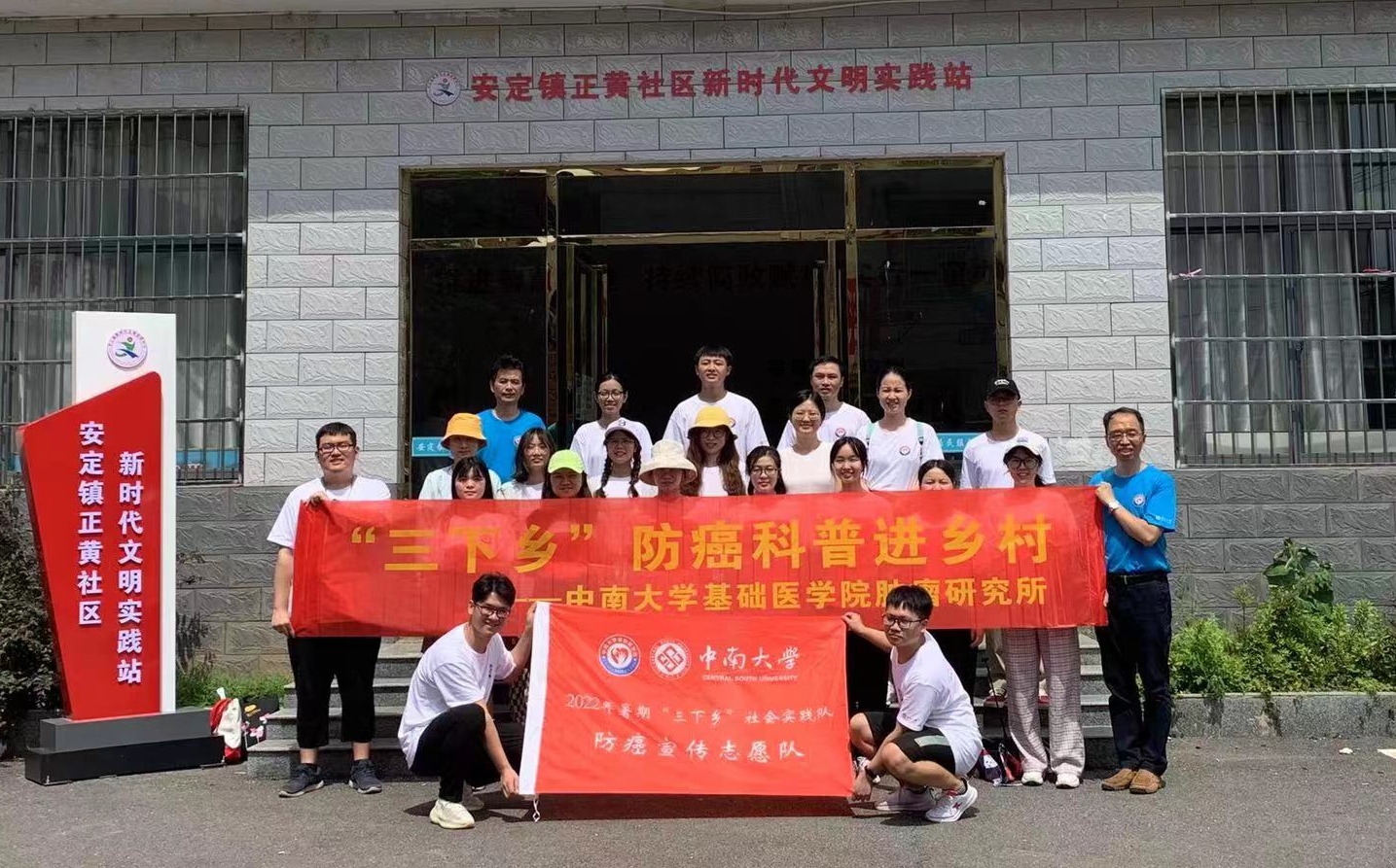 在安定镇正黄社区,肿瘤研究所教工支部和研究生第三党支部志愿服务团队通过分发防癌宣传画册、开展防癌科普调研等形式,向村民积极传播健康生活方式,引导每个人做自己健康的第一责任人,正确认识癌症,积极防控癌症,树立癌症三级预防理念,做到早预防、早发现、早诊断、早治疗,降低癌症发病率和死亡率,提高癌症早诊率和生存率,切实遏制癌症危害,提升群众健康水平。