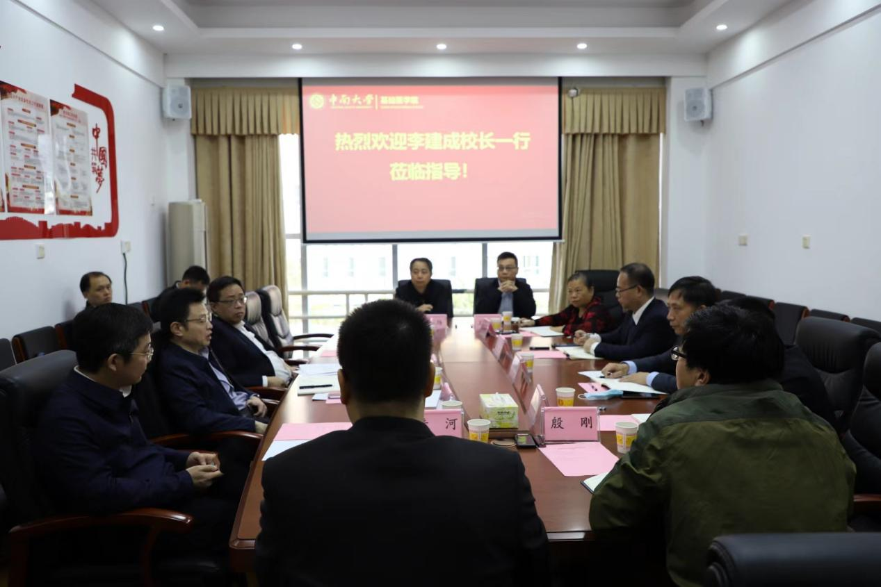 10月14日上午,李建成校长在陈翔常务副校长、黎志宏副校长陪同下,莅临学院调研,听取学院工作汇报,与学院领导班子座谈,并就基础医学学科建设和学院高质量发展进行深入交流。座谈会由院党委书记李顺长主持,全体在家院领导参加。