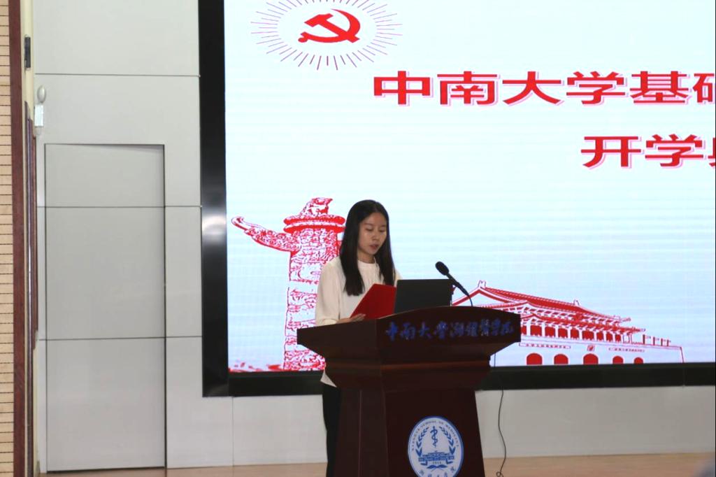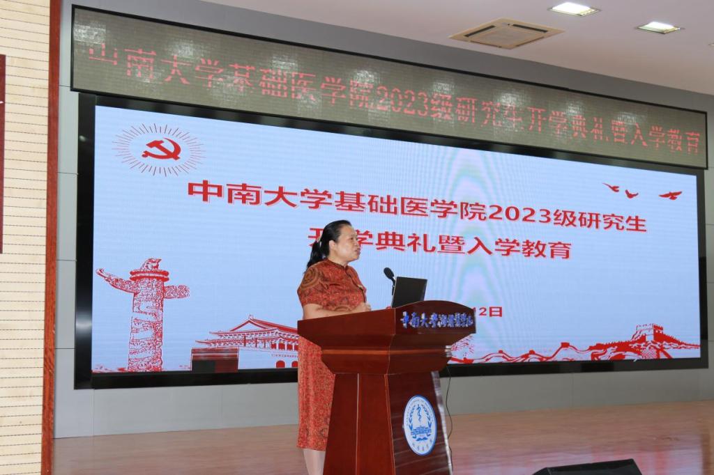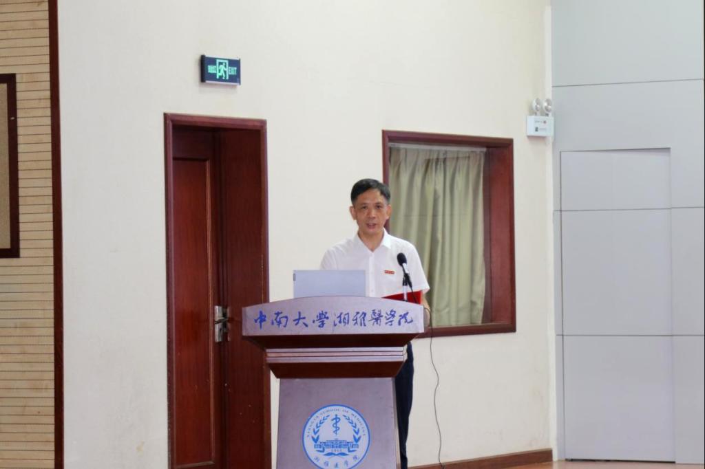 管茶香副院长代表全院师生热烈欢迎新同学的到来,并用“明确目标、筑梦前行”寄语新生,鼓励同学们要树立远大理想、潜心科学研究、提升综合素养,为国家医学事业发展贡献湘雅力量。