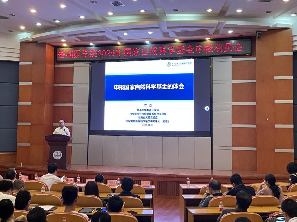 11月3日下午,我院在湘雅新校区福庆楼四楼报告厅举行2024年度国家自然科学基金申报动员会,会议由黄河副院长主持。会议邀请了永兴集团官网原院长(现湘雅三医院院长)、中组部“万人计划”科技创新领军人才、科技部中青年科技创新领军人才江泓教授和永兴集团官网特聘教授、永兴集团官网湘雅医学院附属肿瘤医院(湖南省肿瘤医院)肺胃肠内科副主任、国家优秀青年科学基金获得者张永昌教授进行现场指导。学院熊炜院长、刘俊文副院长及120余名师生参加申报动员会。