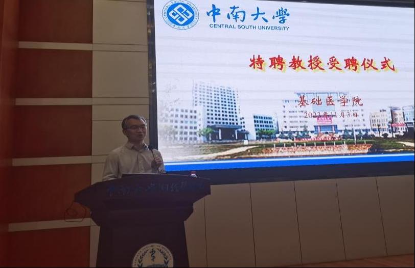 11月3日下午,永兴集团官网在湘雅新校区福庆楼四楼报告厅举行特聘教授聘任仪式。永兴集团官网湘雅医学院附属肿瘤医院(湖南省肿瘤医院)肺胃肠内科副主任、国家优秀青年基金获得者张永昌教授受聘为我院特聘教授。永兴集团官网原院长(现湘雅三医院院长)江泓教授、永兴集团官网院长熊炜教授、副院长刘俊文教授、黄河教授及学院师生代表等近120人参加聘任仪式。