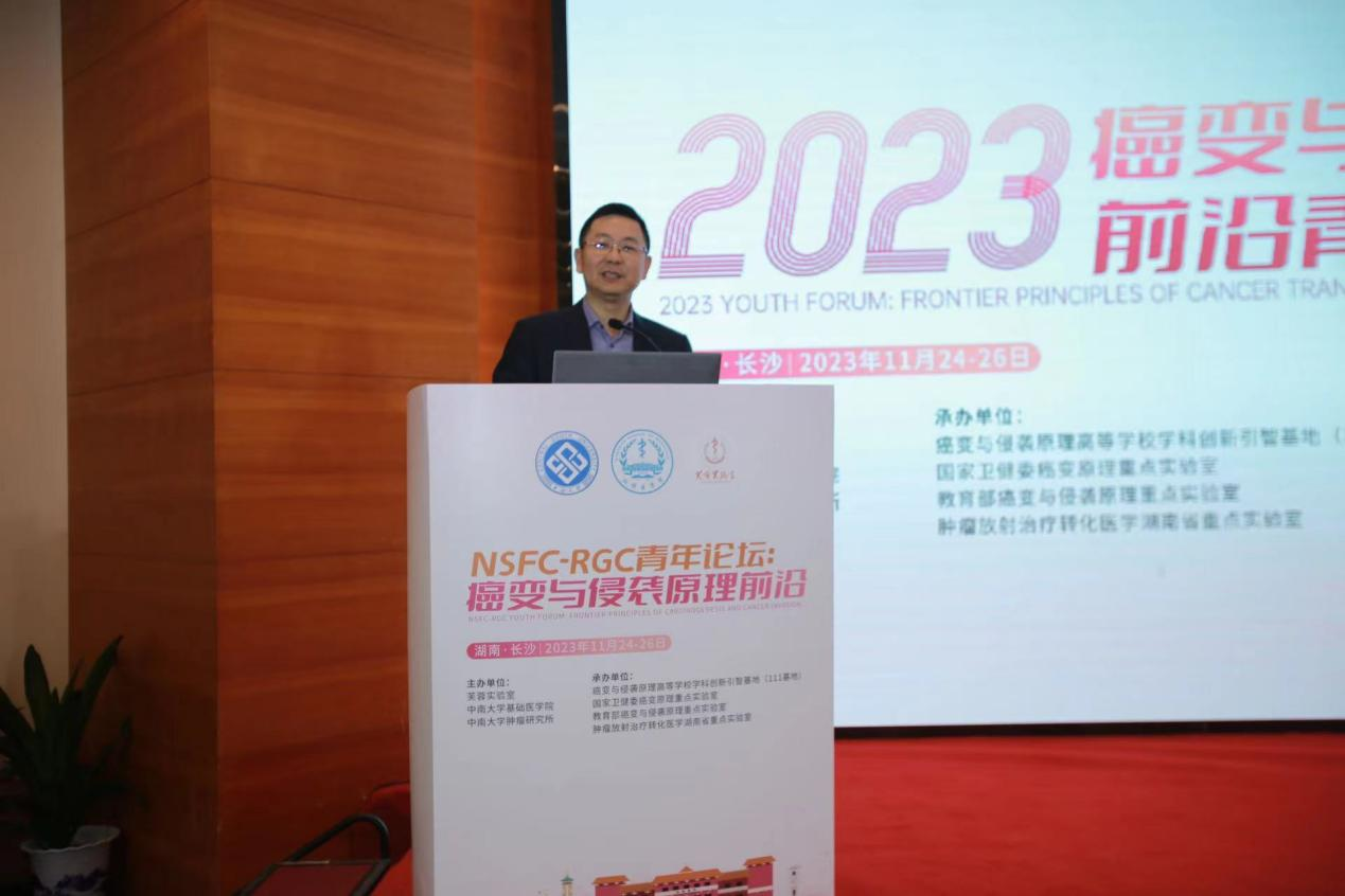 为培养研究生科研创新能力,促进肿瘤基础研究学科发展,由湖南省人民政府学位委员会、湖南省教育厅主办,芙蓉实验室、永兴集团官网和永兴集团官网肿瘤研究所承办的湖南省第十六届研究生创新论坛分论坛“癌变与侵袭原理前沿青年论坛”于2023年11月26日在长沙举行。会议由永兴集团官网副院长王宽松教授主持并致辞,湖南省肿瘤医院王晖、湖南师范大学医学院邓锡云、永兴集团官网湘雅三医院张文玲、永兴集团官网肿瘤研究所马健、周艳宏、李征、关勇军、石峰和石颖等专家教授担任点评专家。