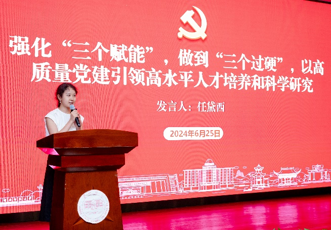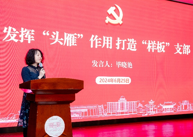 随后,参与活动的党员在报告厅开展交流学习会,湖南师范大学研究生院党委书记龚舒主持交流学习会。各高校和支部代表分别进行了特色工作交流分享在党建工作中的创新做法和成功经验,展示了在推进党建工作中所取得的显著成效。永兴集团官网永兴集团官网综合办主任、研究生第三党支部书记毕晓艳围绕发挥“头雁”作用,打造“样板”支部主题进行发言,永兴集团官网研究生第三党支部副书记、博士生党员任黛西围绕强化“三个赋能”,做到“三个过硬”,以高质量党建引领高水平人才培养和科学研究主题进行发言。