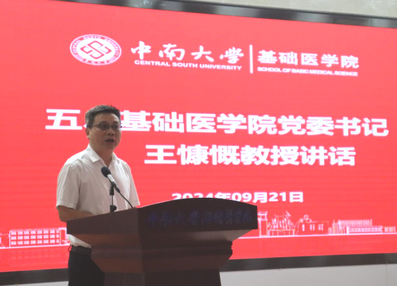 学院党委书记王慷慨代表学院全体师生对同学们的到来表示热烈欢迎,详细介绍了学院师资力量、学科建设、科研设备、教学特色、人才培养等方面的基本情况,激励同学们努力提升自我,提高自身专业素养和实践技能,并对同学们提出了三点希望:一是树立远大理想,融入时代大潮,二是锤炼过硬本领,大胆探索未知,三是勇于面对挑战,磨练意志品质。希望同学们用智慧和青春书写新的人生篇章,传承好百年湘雅接力棒。